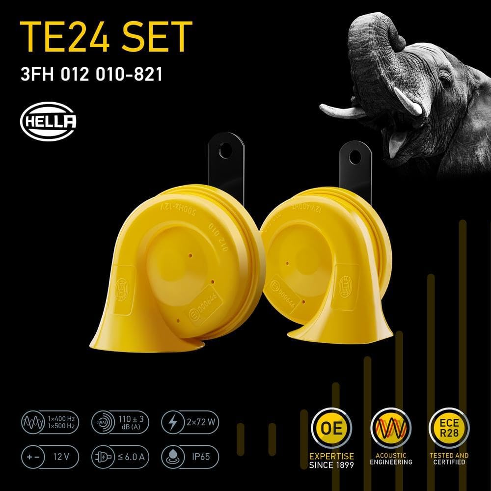 HELLA 012010821 Kit de bocina de trompeta Amarilla de 12 V (ajuste universal)