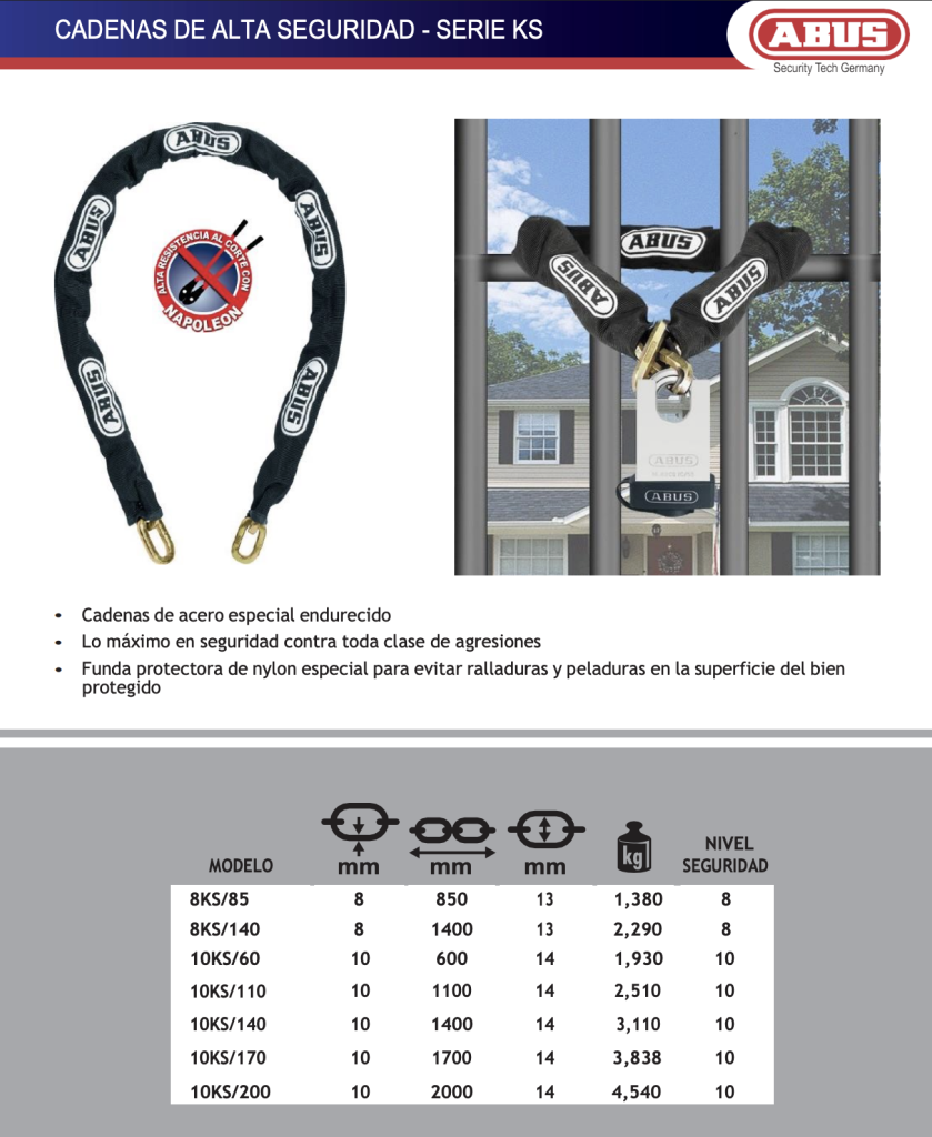 Cadena de alta seguridad diseñada para brindar máxima protección en todo tipo de usos. Fabricada en acero reforzado, resistente a cortes, tracción y desgaste. Ideal para asegurar pertenencias con confianza, ofreciendo durabilidad y respaldo frente a intentos de robo.