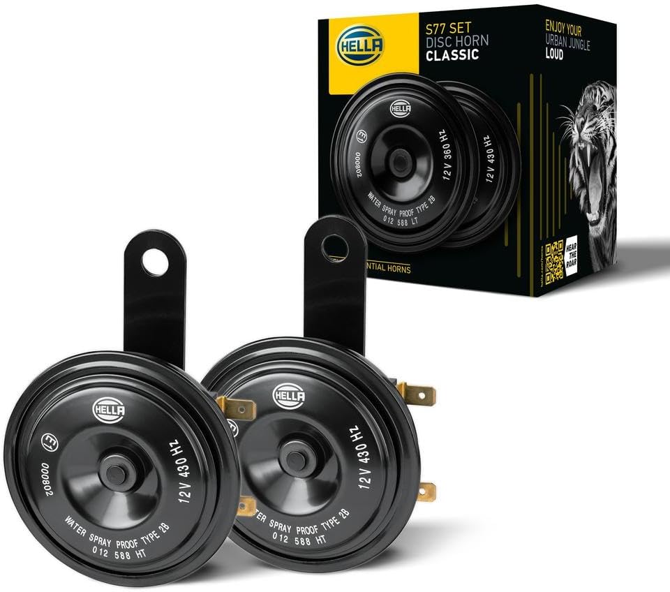 HELLA 012588151 – Kit de bocinas de disco negras BX de 77 mm, 12 V (ajuste universal)
