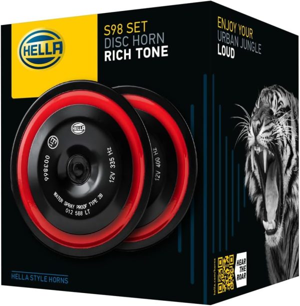 Hella KIT BOCINA DISCO CAJA REJILLA NEGRO Y ROJA 98MM 12V UNIV 012588341